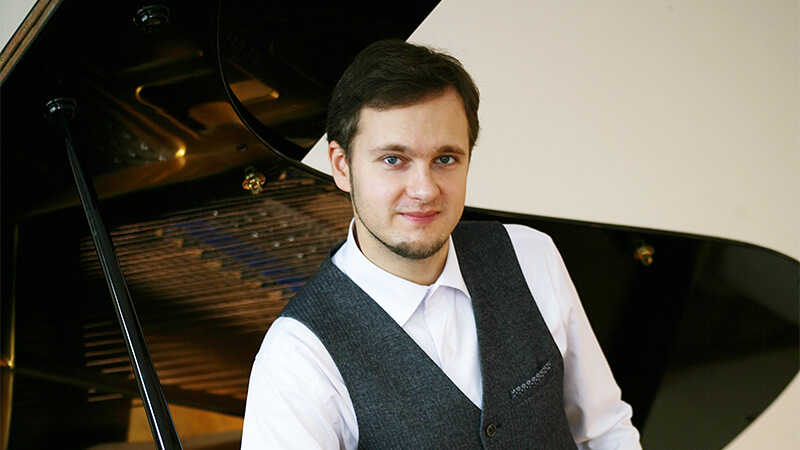 "Ich spiele für Weltklassik am Klavier, weil es mir die Möglichkeit gibt, interessante Konzertprogramme zusammenzustellen und dabei neue Orte und ein vielfältiges Publikum kennenzulernen." - Konstantin Zvyagin
